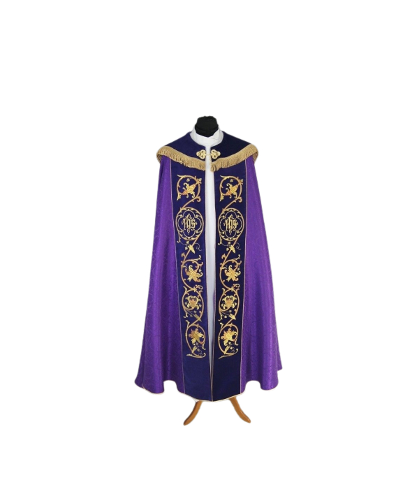 Kapa fioletowa haftowana IHS — aksamitne pasy (80)