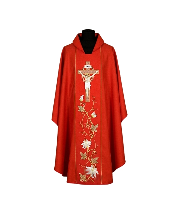 Ornat czerwony haftowany - IHS (26)